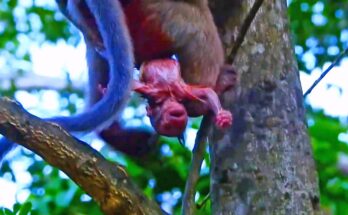 Beneath the fading afternoon light, the forest feels unusually quiet. A tiny baby monkey clings desperately to his mother, his cries echoing softly through the trees. Today is not just …