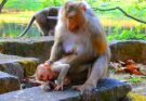 Mother Monkey Gently Cares for Her Newborn Baby Read More
