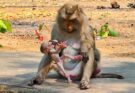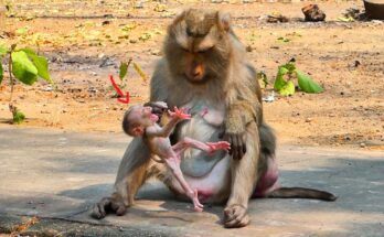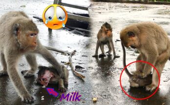 In a calm forest setting, a mother monkey named Stephanie shows a quiet and complex moment with her baby, Steely. As Steely moves closer, hoping to nurse, Stephanie gently shifts …