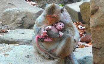 In a quiet corner of the forest, a small moment unfolds between a mother monkey named Stephanie and her baby, Steely. The little one rests peacefully on a low wooden …