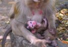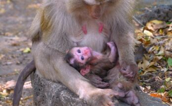 In a peaceful forest setting, a heartwarming moment unfolds as a mother monkey watches her young one with calm joy. After a period of concern and careful attention, she now …