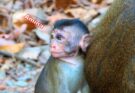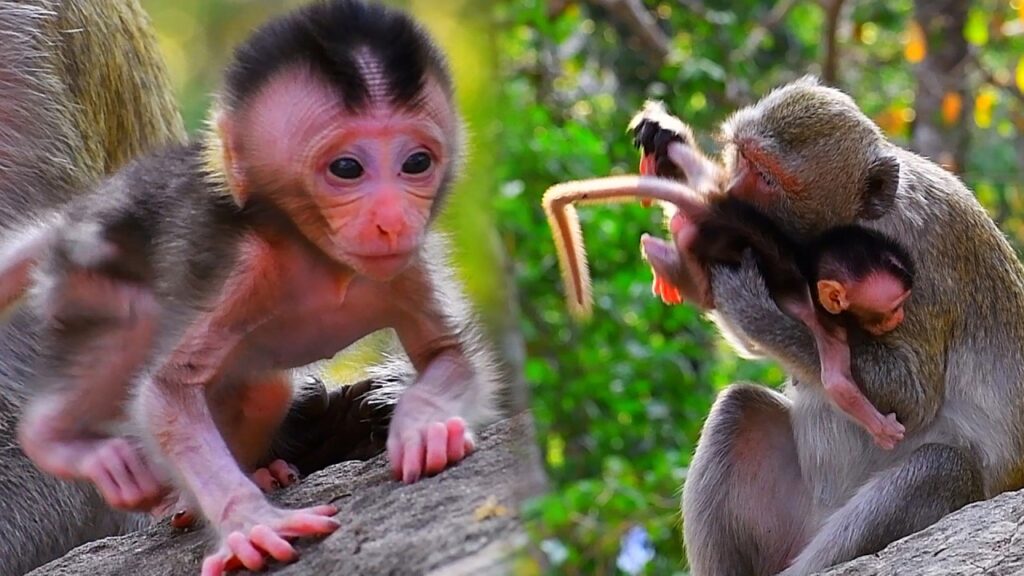 Nearby, the mother watches closely, offering quiet support and protection. Her calm presence allows the baby to explore freely while still feeling safe. This bond gives the young monkey the confidence to keep trying, even when the steps are uncertain.