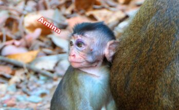 The baby monkey often pauses, looking around with bright, curious eyes before trying again. Sometimes it loses balance and gently sits down, only to rise once more with renewed effort. These early attempts are part of natural development, helping build strength, coordination, and awareness.