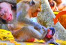 In the quiet heart of the forest, a puzzling and emotional scene unfolded. A newborn baby monkey lay curled beside its mother, whimpering softly again and again. The tiny body …