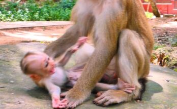 In the middle of the dense forest, a heartbreaking scene unfolded. A young mother monkey, restless and anxious, began acting harshly toward her tiny newborn. The baby, still weak and …