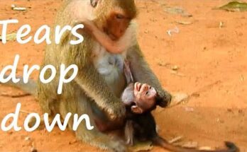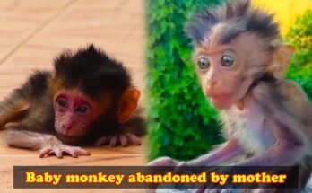 Deep inside the quiet forest, a heartbreaking scene unfolded when a tiny newborn monkey was found alone on the cold ground. His eyes were barely open, his body weak, and his cries echoed softly through the trees. His mother was goneβno warm arms, no milk, no protection. For a newborn in the wild, losing a mother often means losing life itself.