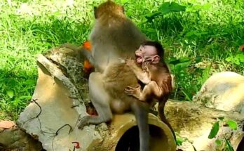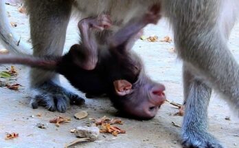 As evening approaches, the forest grows quieter. The baby monkey, full and tired, falls asleep under the mother’s belly. The crying stops, replaced by slow breathing. The mother remains awake, guarding her newborn through the night. This daily wildlife moment—of a new baby monkey crying for milk and a mother responding with care—shows the powerful love, struggle, and resilience that define life in the wild.